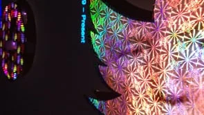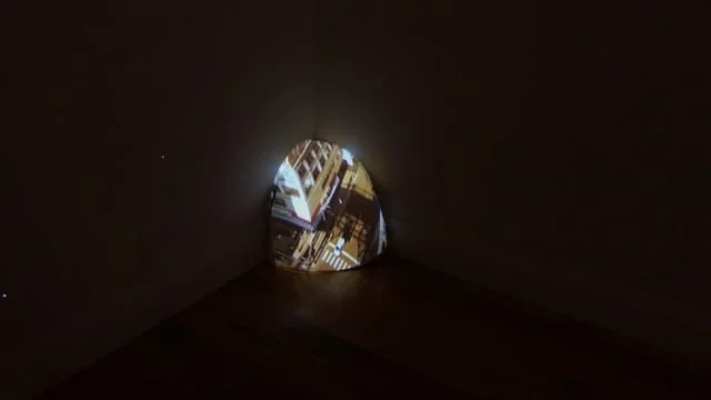 Golden Shield Project series - Blocked Website is a sculptural video installation made with different type of laser paper and cardboard. This multi-thematic piece was inspired by “Golden Shield Project”, the shape of the cardboard was chosen from prohibited website’s logo. The visual illusion of laser paper can be reminiscent of the texture of a magic card or the shiny sequins of a disc and the mosaic in the network, which creates a curious and mysterious visual effect. The "mystery" image from the banned website is flashed back to us on the surface of the paper shell, which is transformed into a form of distortion and illusion .From which the color, shape and information data of the video clips are selected to form a digital information palette to construct the final projection ring.